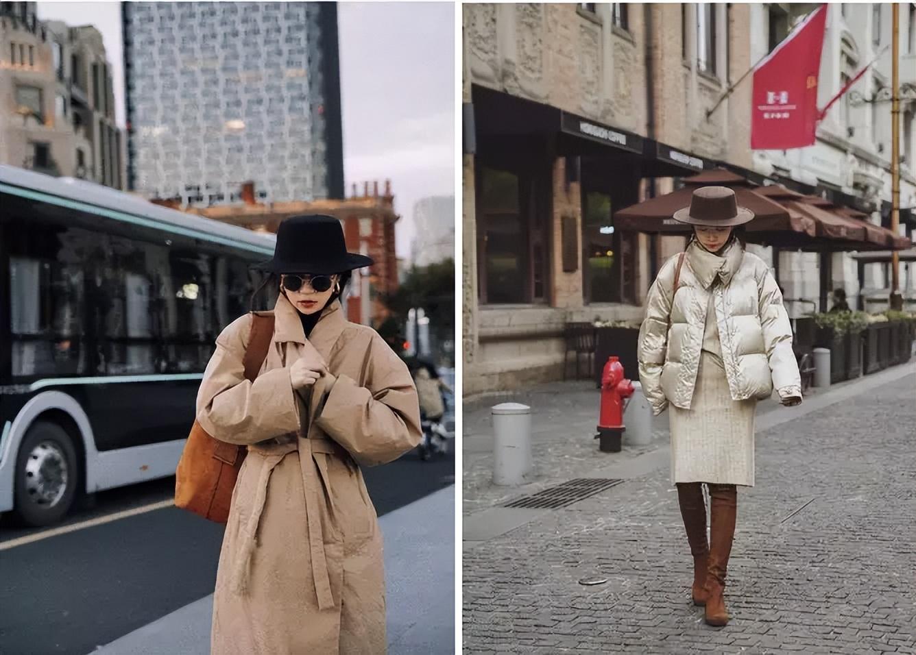 平顶帽整体风格偏绅士贵气,当穿着较为平淡比如大衣时加入它,能在不经意间散发出优雅矜贵的气质。而且宽檐的设计与冬季厚重的羽绒服搭配,能起到很好的平衡果,时髦又好看。