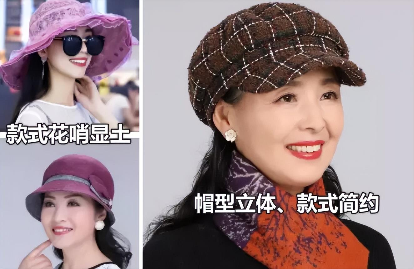 对于中年女性来说,帽子的作用大,不仅可以遮住稀少的发量、修饰我们面部的轮廓以及遮住皱纹,还能让普通基础的穿搭变得更时尚。