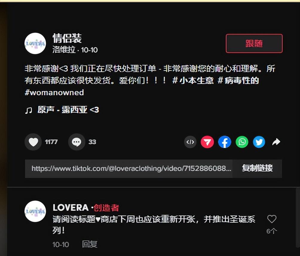 评论区挤满了求购的用户,品牌也在一夜之间风靡 TikTok ,收到数百个订单。