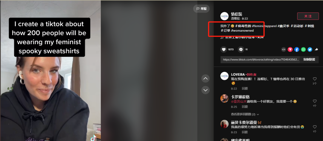 近,在外网就有这样一对年轻的英国夫妻火了,他们通过借助 TikTok 带货自有女权品牌服饰,一天狂赚 2.2 万英镑!