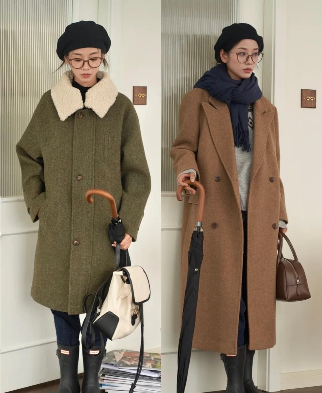 这两件大衣都是可以容纳多件内搭的类型,而且颜色的选用也很到位,不会因为驾驭了彩色就提高了搭配难度。