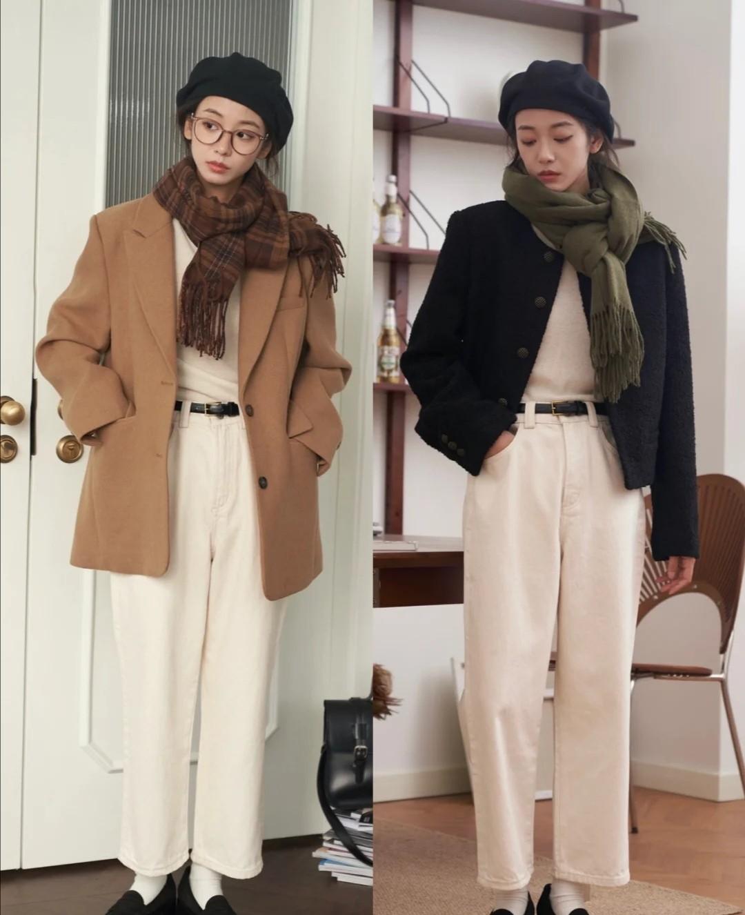 白色单品的出现频率一直是偏高的类型,可以是白色的内搭,也可以选用短一点的白色外套,增加利落的感觉。
