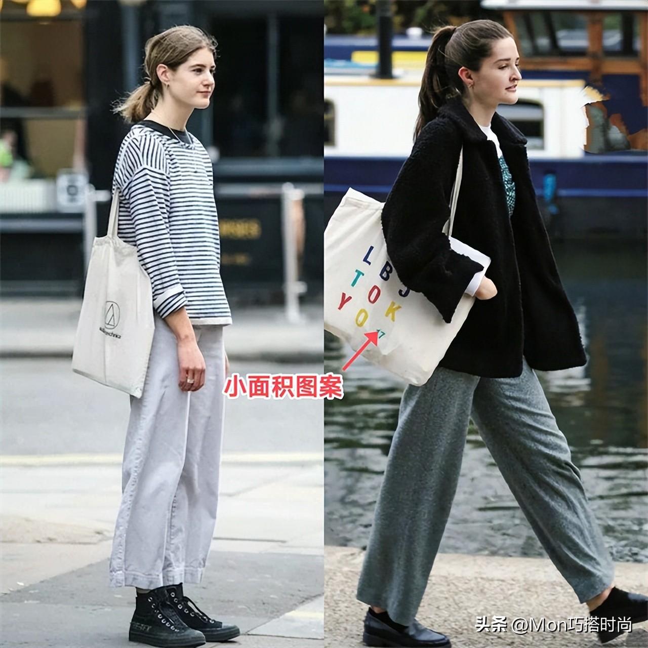 (技巧①)图案帆布包和纯色基础款的简繁结合