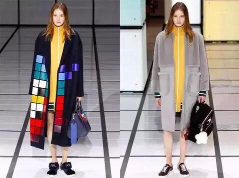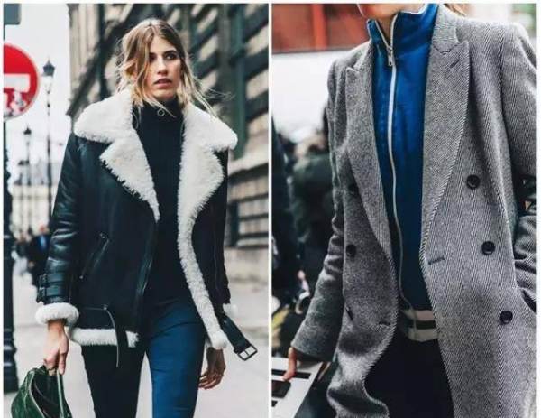 如果选择入手一件颜色艳丽的高领拉链衫,那么搭配各式极具造型的外套大衣,可以既保暖又时髦!▼