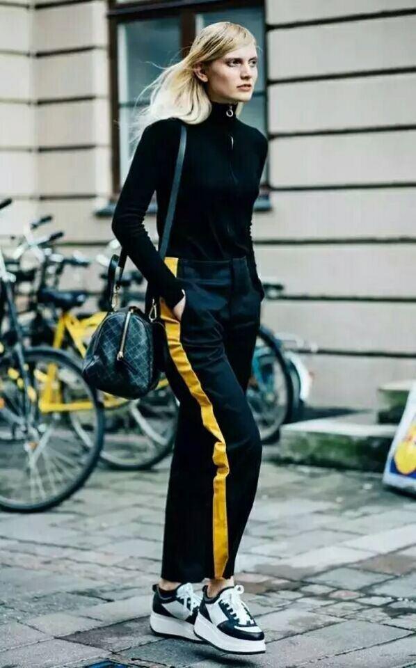 明星潮人们更多新鲜搭配出炉。助推了校服裤的火热。