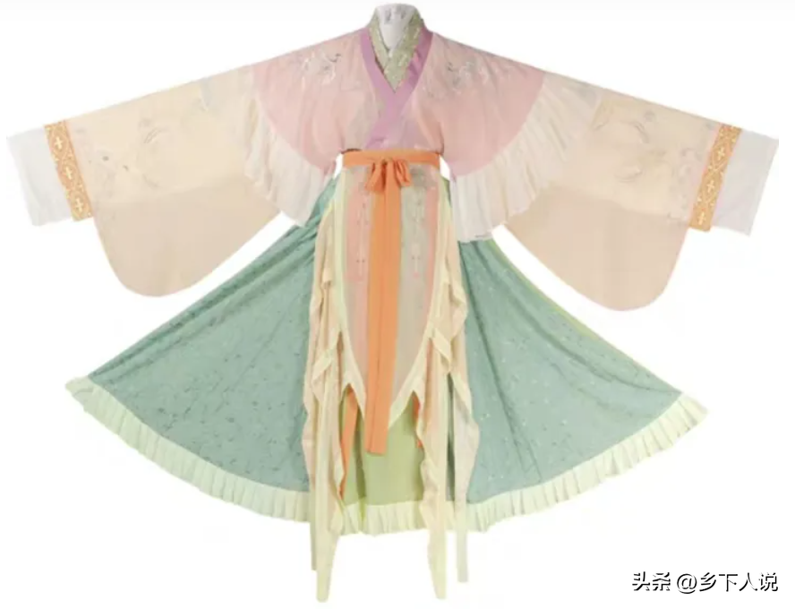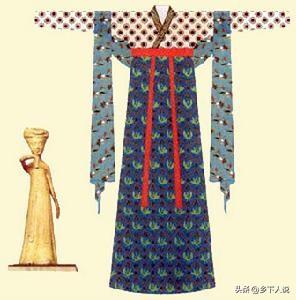 汉代妇女常着的服式,其形制与深衣基本相似,只是服装底部,有由衣襟曲转盘绕而形成两个尖角的衣饰。
