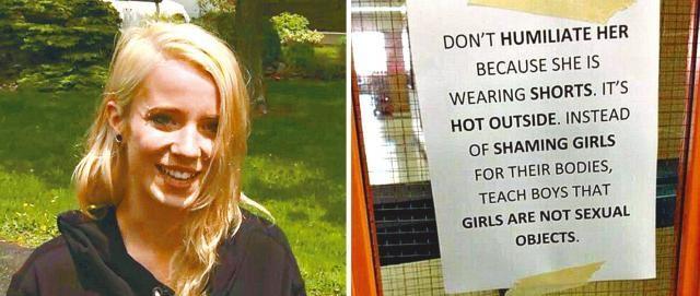 Stocker认为学校的规矩不合理,于是印了大迭街招贴满全校抗议,写着:“Don’t humiliate her because she is wearing shorts. It’s hot outside. Instead of shaming girls for their bodies, teach boys that girls are not sexual objects.(不要因为她们穿短裤而羞辱她们。天气很炎热。与其因为身体而羞辱女生,不如教男孩别以女孩为性对象。)虽然街招在十分钟内就被人撕下,但相关消息早已在社交网站传遍开去,不少女生都支持她的宣言,并集体穿短裤上课以示支持,但Stocker仍被罚停课。