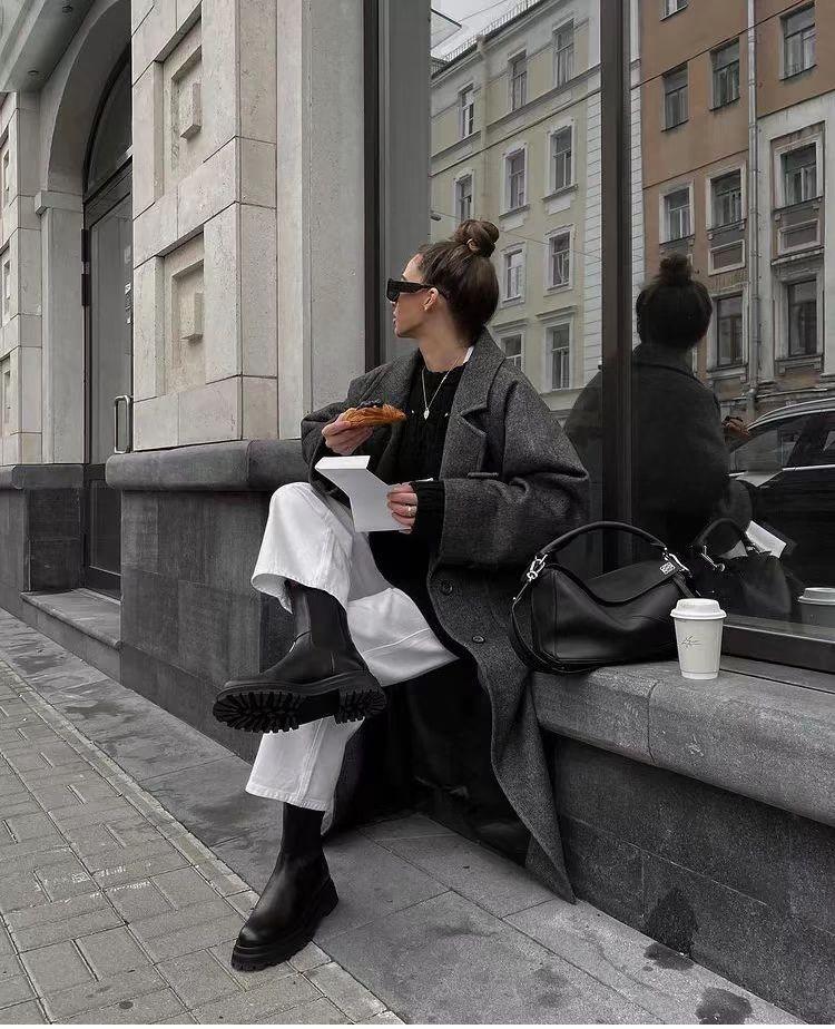塑造职场风格,除了搭配平底鞋或者是高跟鞋之外,也可以选择中性风十足的黑色小皮鞋,这种鞋子风格简单随性,可以让职场风格看起来更有气场。