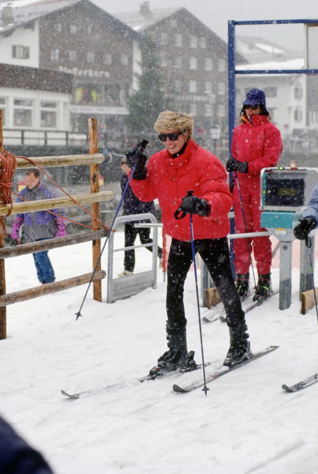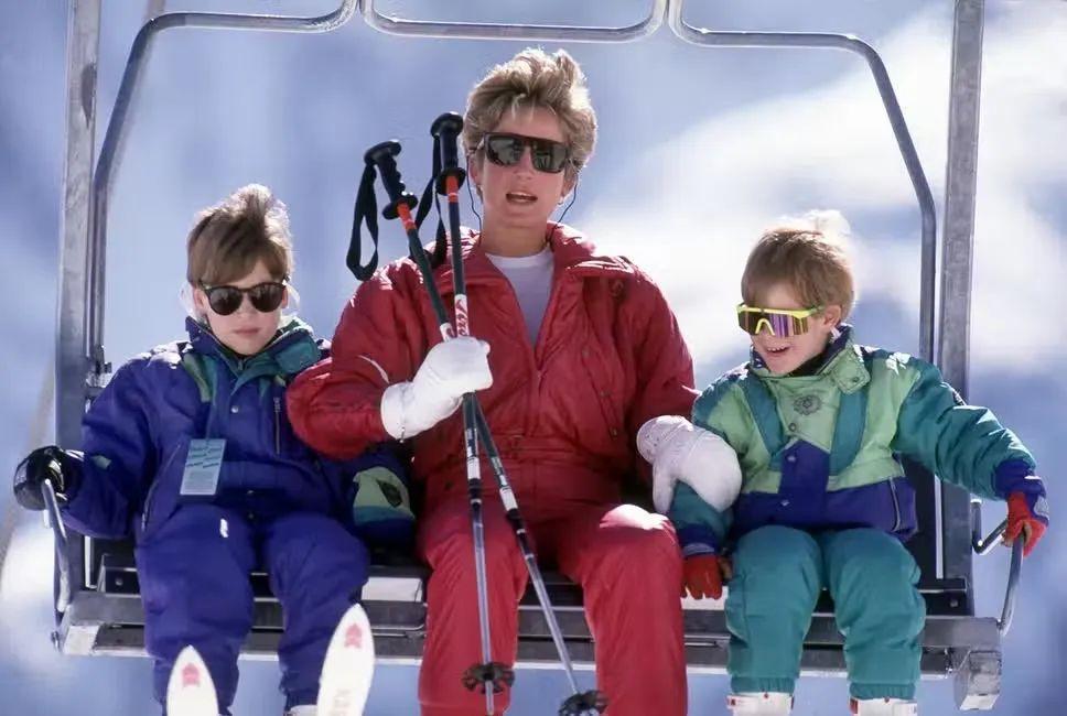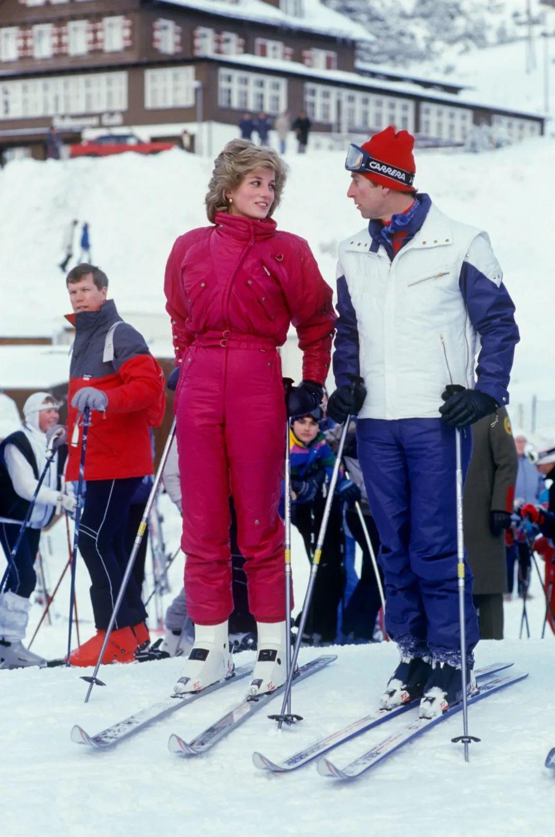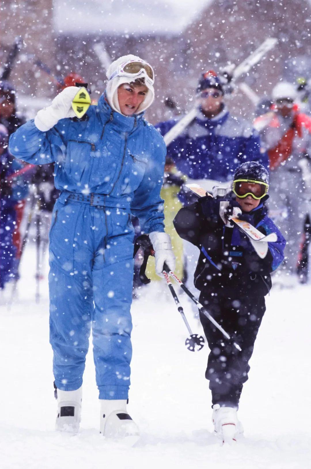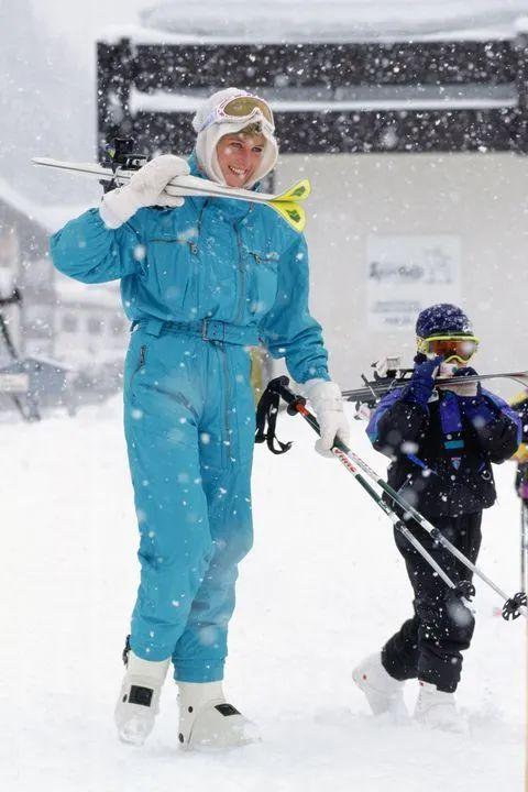 能一览王妃下场运动的机会不算多,但滑雪算戴安娜被记录下的照片多的项目之一。自1985年开始王妃一家就有前往瑞士和奥地利雪山度假的习惯,王室的滑雪之旅与普通人也并无不同,既不存在包场,雪板雪仗都会自己扛上山。