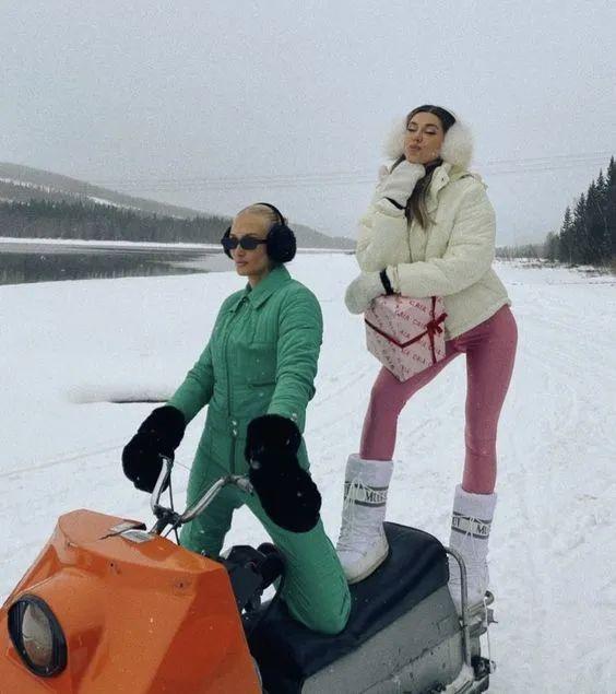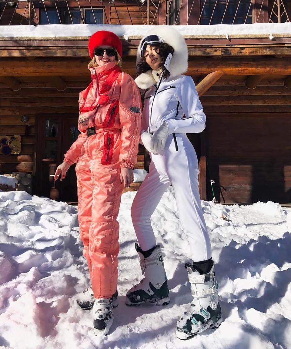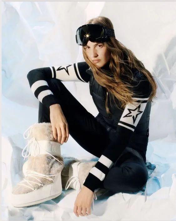 原本宽松的上半身廓形被收束起来,腿部版型也变得更为苗条,轮廓分明的同时更能凸显身材曲线。被挖掘出时尚属性的滑雪服自然备受女士们青睐,甚至会直接穿去滑雪后的社交派对,也由此诞生了“Après-ski”的精致滑雪风格。