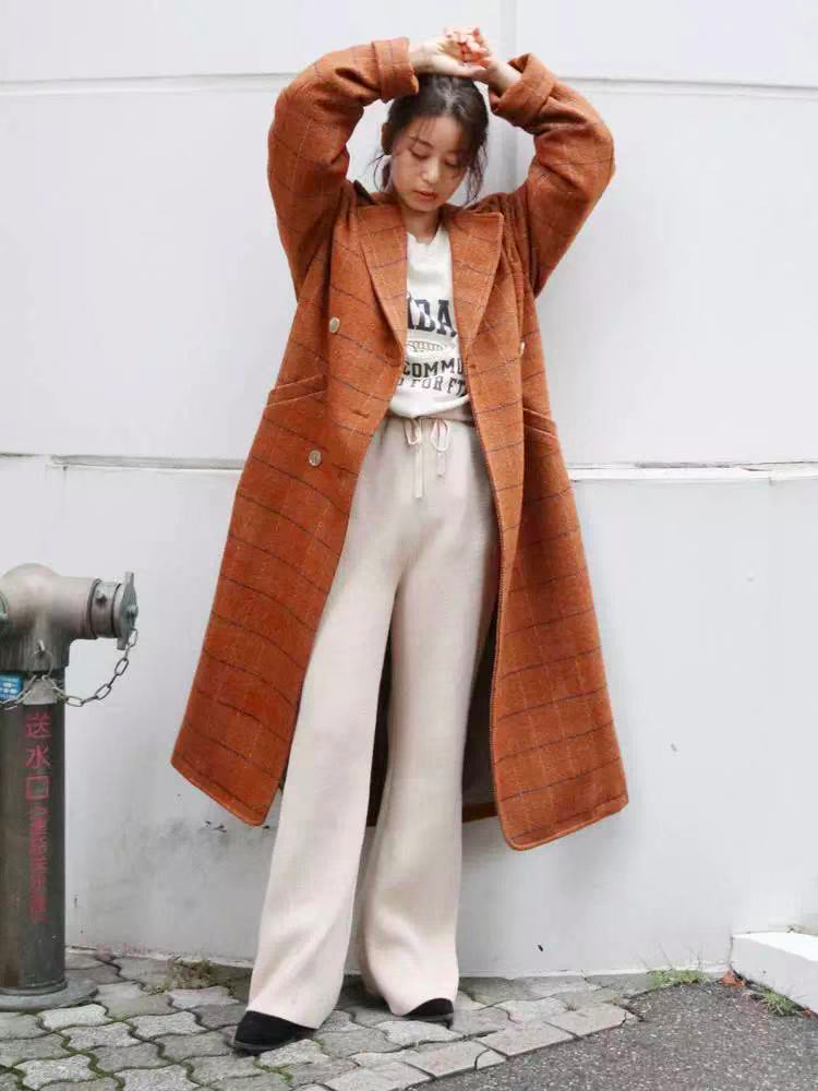 米色长裤更甜,尤其是休闲的长腿裤款式,它可以更高并显示出更长的腿。穿着字母T恤会立即降低女孩的年龄。橙色格子夹克特别阳光明媚和白色。