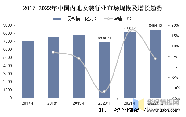2017-2022年中国内地女装行业市场规模及增长趋势