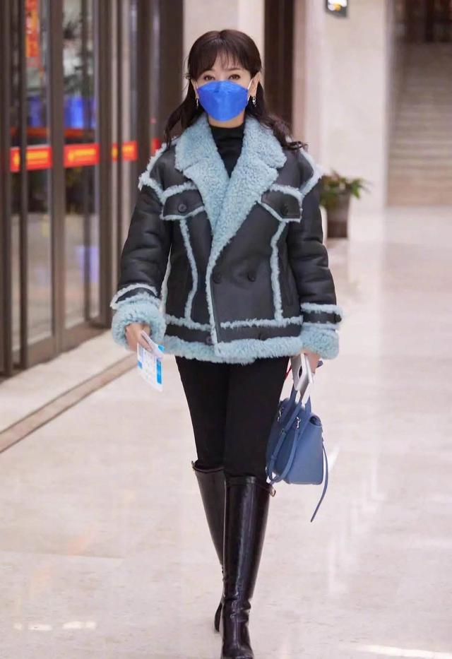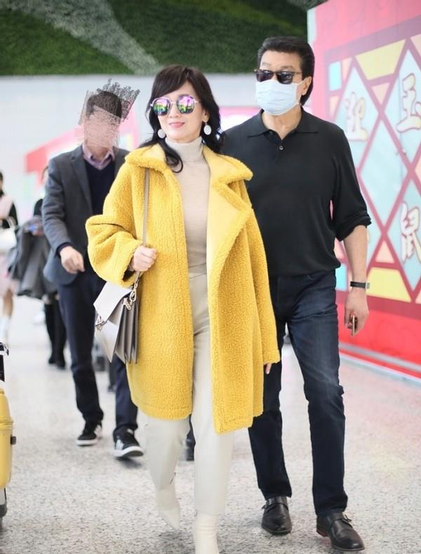 亮眼的姜黄色羊羔绒大衣穿在赵雅芝的身上显得年轻又得体,一点装嫩的感觉都没有,在亮色系的大衣里面搭配上米色的内搭,在整体的配色上既可以呈现出足够的和谐感又可以搭配出知性的女人味。