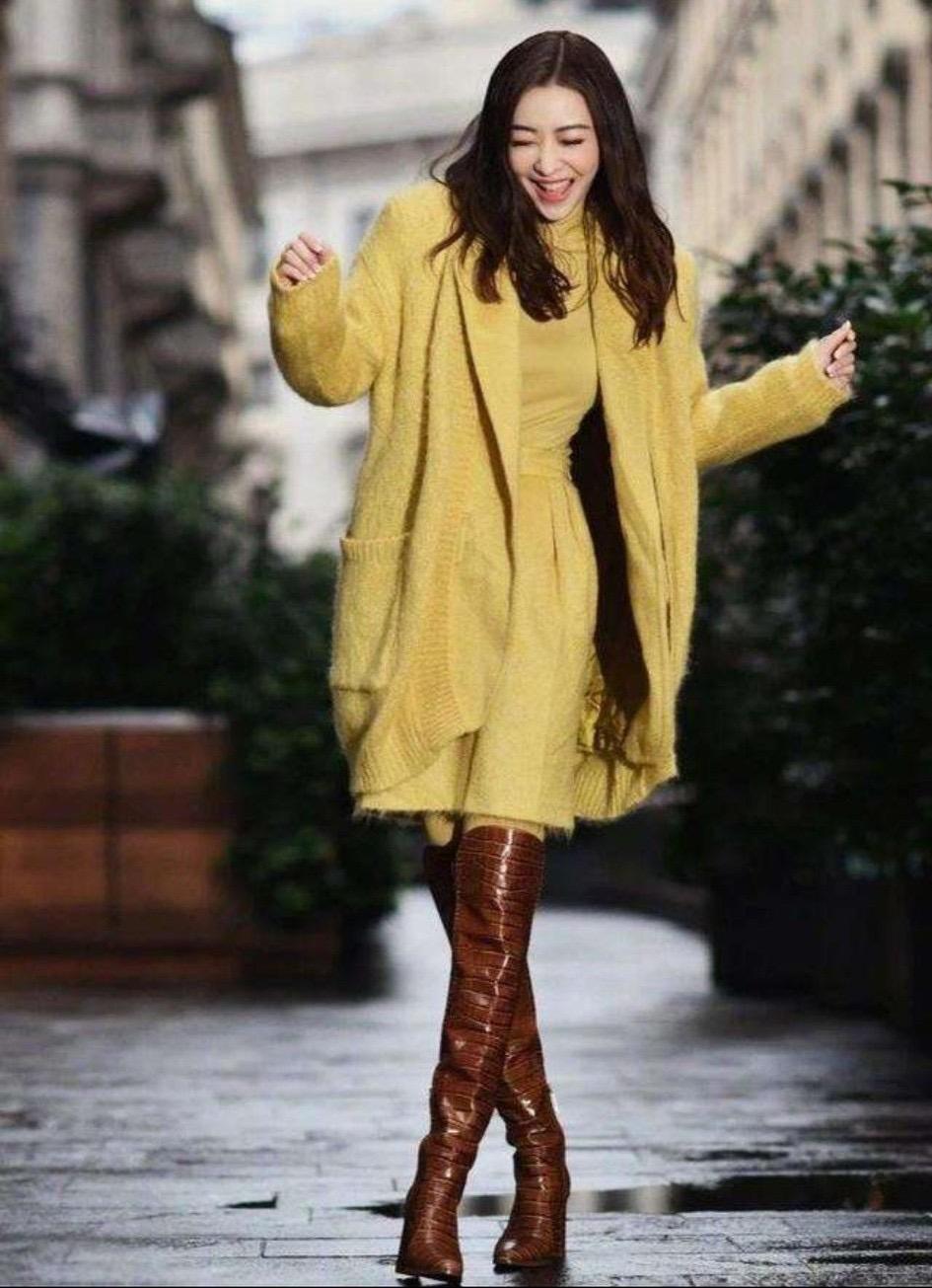 宽松的外套来搭配过膝的长靴,是一种常见的上松下紧的搭配方式。不仅优化比例显腿长,也更加的时髦摩登一些。日常的穿搭中,更加精致出彩。
