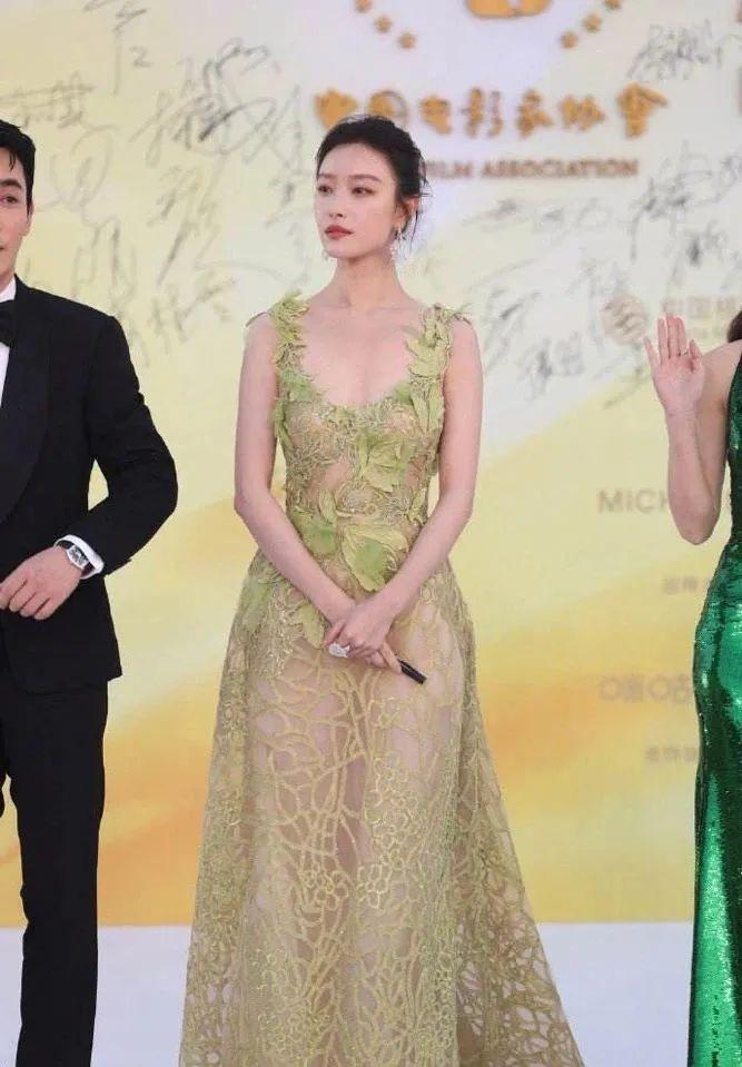 其中,倪妮在金鸡红毯上一身绿意盎然,遮掩风情女郎标签。