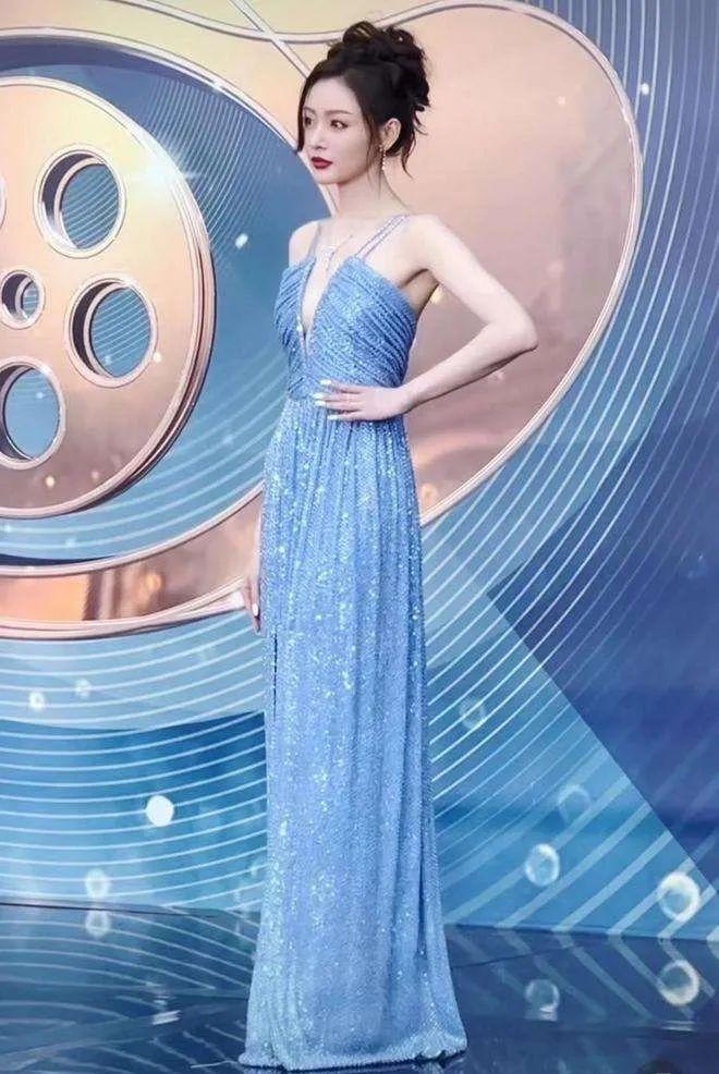 当日,她穿着一身香槟色亮片长裙出现在红毯上。