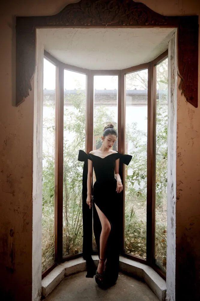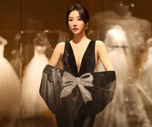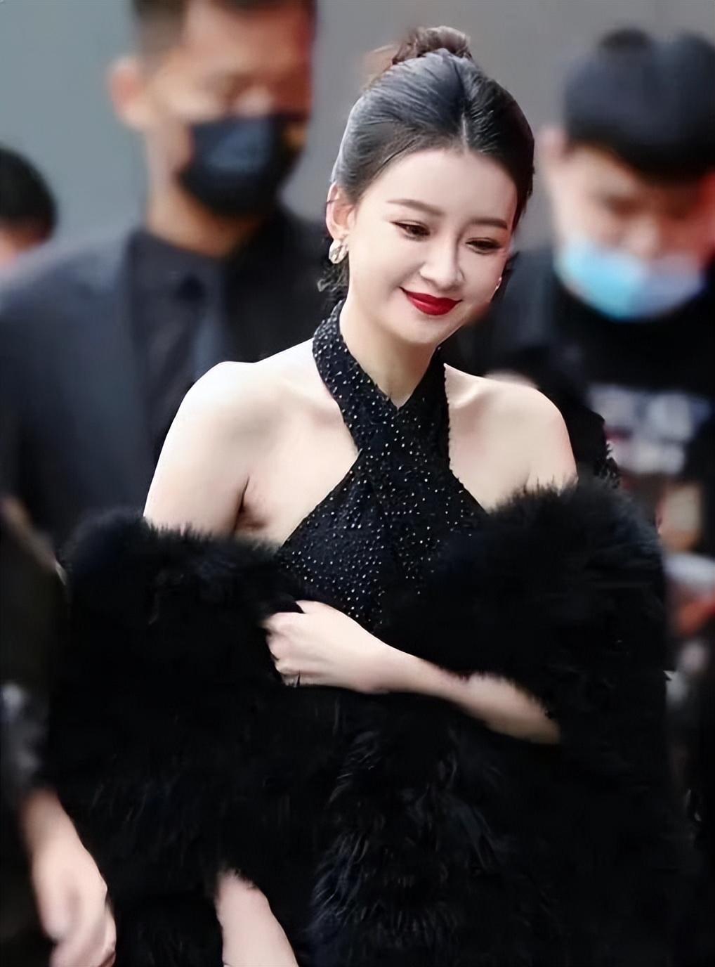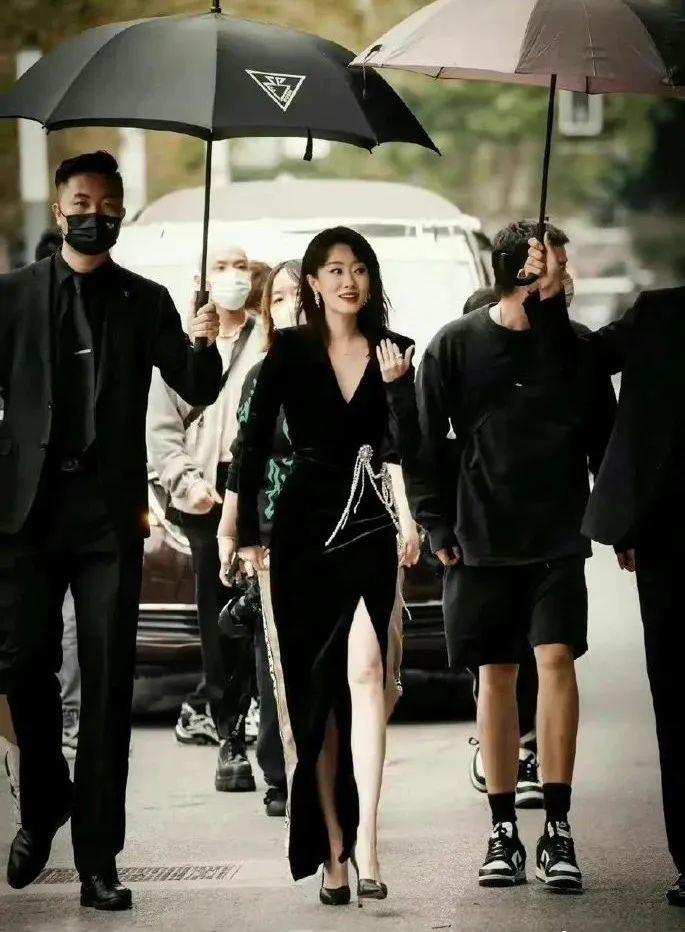 今年某段视频平台的活动中,她身着黑色大V高开衩长裙,头发干练的扎在脑后,红唇性感妩媚。