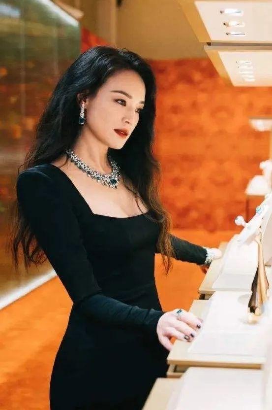 今年某珠宝品牌的活动上,舒淇一身黑色长袖裹身及踝长裙,礼服简单到不能再简单。