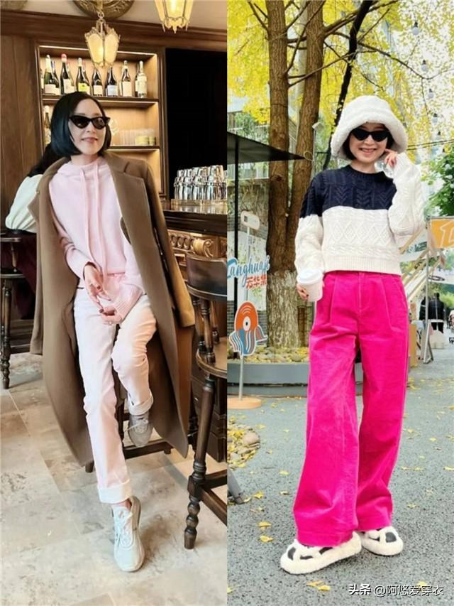 身边有很多女性到了五六十岁的年纪,穿衣搭配就越来越鲜艳,这个时候她们很害怕显老,所以总以为穿的颜色亮眼一些就不会老气。总喜欢尝试那种饱和度很高的亮色系,尤其是这种大红大紫穿在身上,大面积地占据了我们的整体穿搭,看上去就特别的俗气和廉价,反而会拉低个人的气质,显得品味很低。