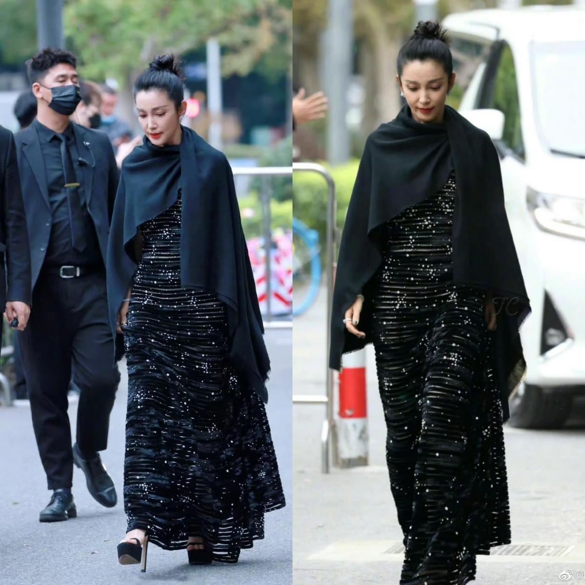 这次造型是大光明发型➕黑色修身礼服,低端贵气,一丝不苟,只露出防水台高跟鞋让大家挑挑毛病。