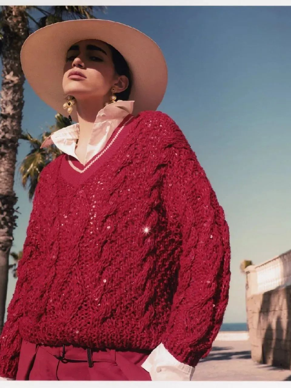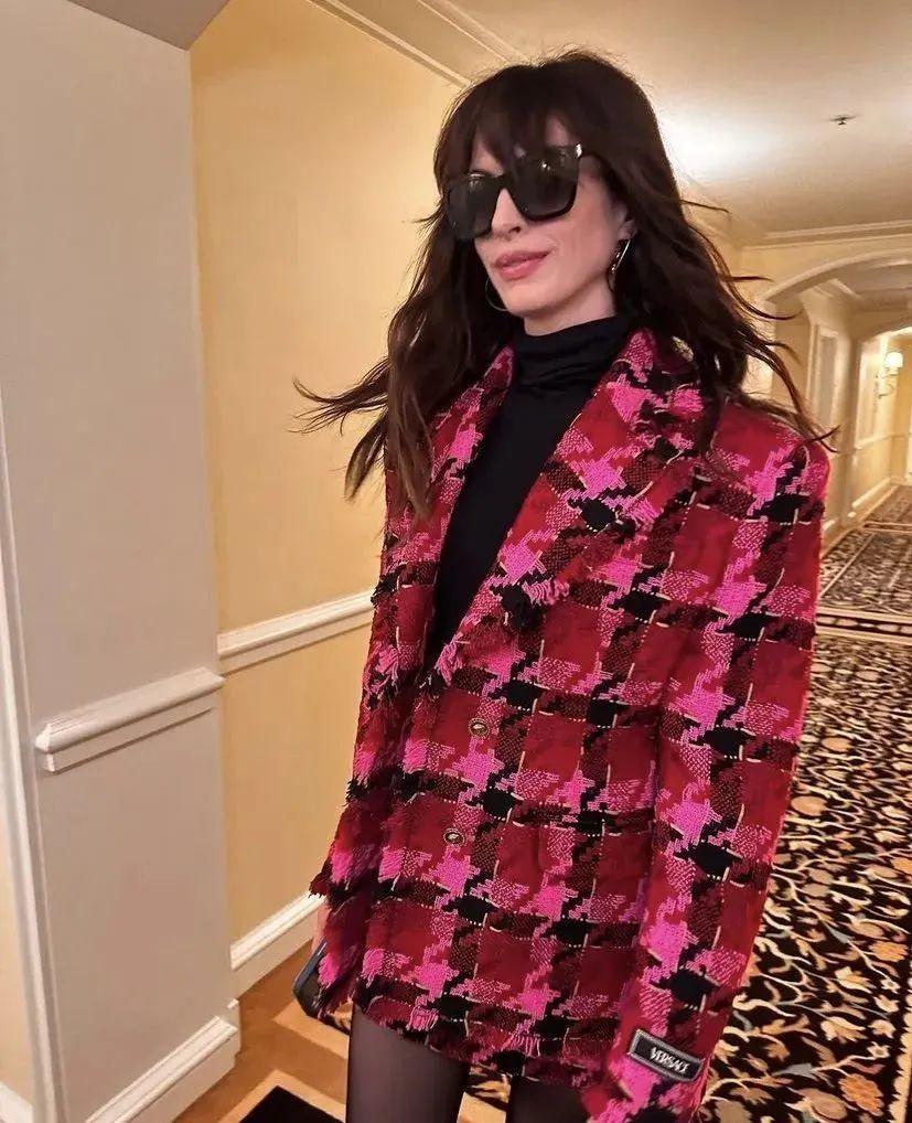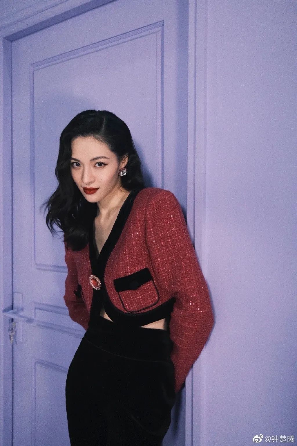 钟楚曦的港风洋红穿搭贵气十足,很适合年末的姐妹主题聚会。
