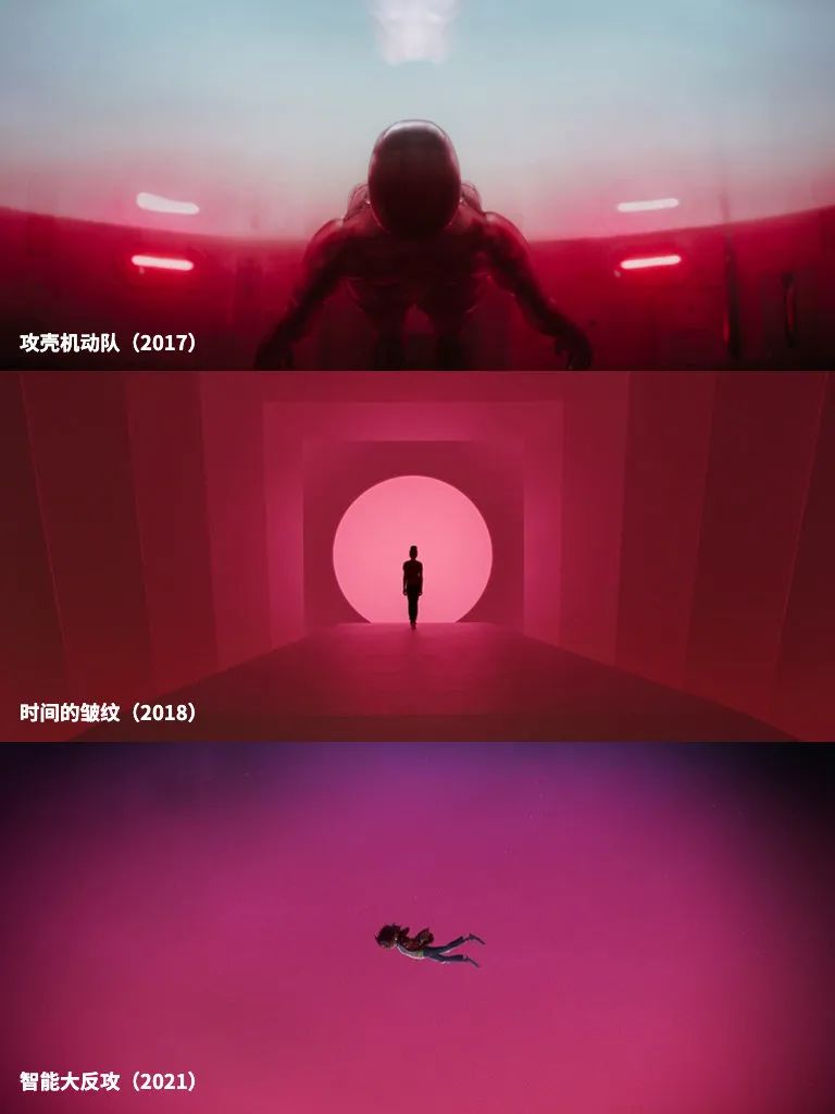当然,洋红色也不仅仅出现于当代艺术作品中。影视作品也有它的身影,这种紫中带红的色调,展现了恍如异世界的怪诞美学,充满未来感的调子也让它成为了数码产品和数字艺术的爱用色。