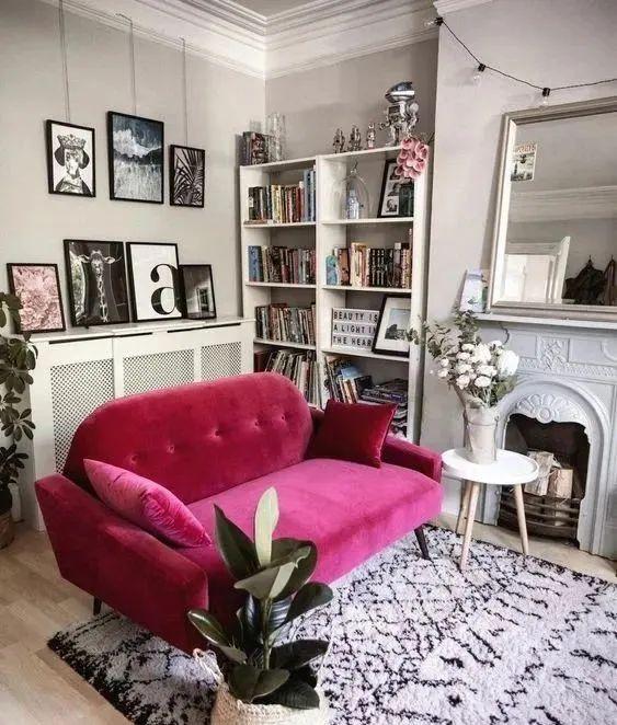 当然,你也可以通过小面积的色彩点缀家里。洋红色丝绒沙发、洋红色地毯、洋红色装饰画......赋予生活空间更多惹人喜爱的摩登调性。