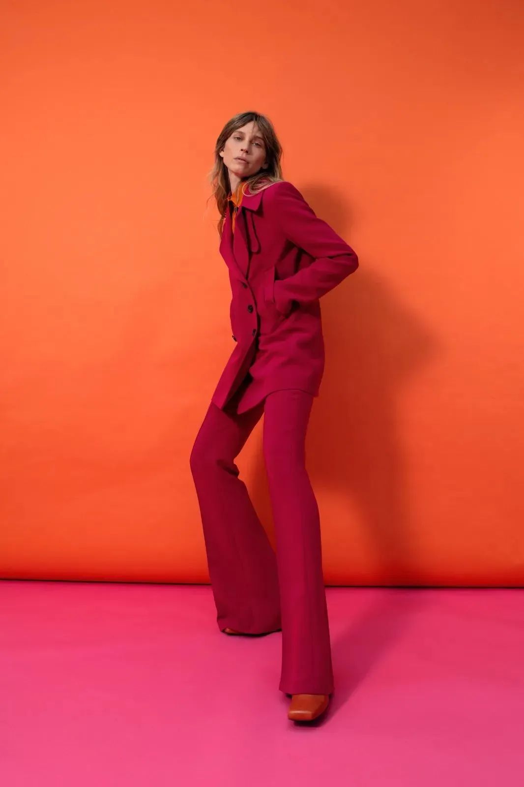 在平日中不喜欢穿亮色系的女生可以利用洋红色的鞋履、手袋、腰带等单品进行点缀,虽是小小的比重就能营造出活力满满的果,轻松打破单调!