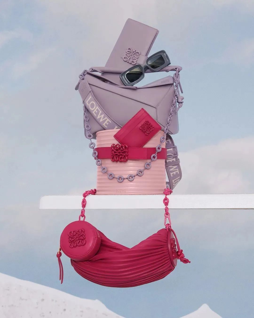 LOEWE在2023年春季系列中特别呈现“中国单色釉系列”,推出了以胭脂红釉色为基础而设计的“宝石红釉”系列,致敬传统,很是吸睛。