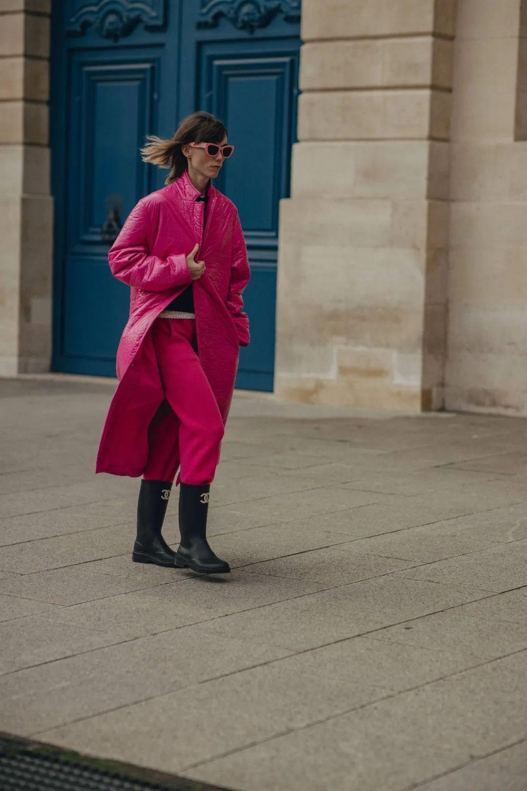 不少时装品牌也看准了这波红色狂潮。首先出击的是Valentino,品牌在2022秋冬系列推出的Pink PP的全新粉色,铺天盖地的粉红色穿搭、建筑、周边......成为新一轮色彩营销主力军。由此可见,各路品牌逐渐开始为来年流行色做下了铺垫。