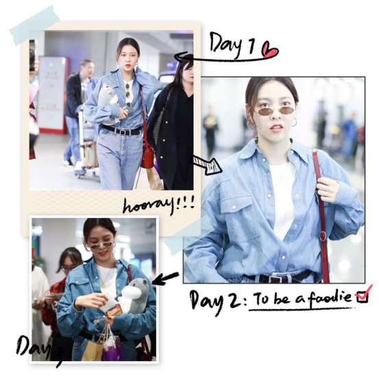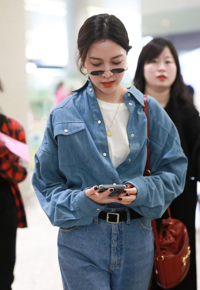 LOOK2 复古迷人风宋妍霏自出道起就受到大批年轻女生的追捧,被当作行走的穿搭教科书了!这本行走的穿搭教科书现身机场,一身全蓝LOOK酷到爆棚,加上冷冷的又具有野性的眼神,真是A爆了