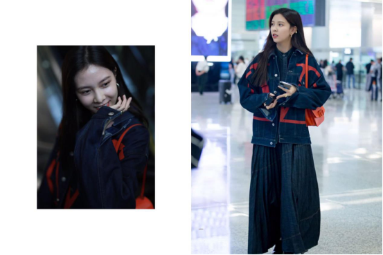 宋妍霏一身超少女温婉搭配,现身机场。让人不禁大呼:也太少女了吧!上身精致的牛仔夹克搭配上黑色的百褶牛仔裙,对于女性的服装会比较的具有精致时髦的感觉
