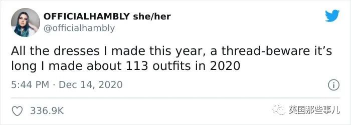 近,她把今年做的一部分裙子放在推特上展示。
