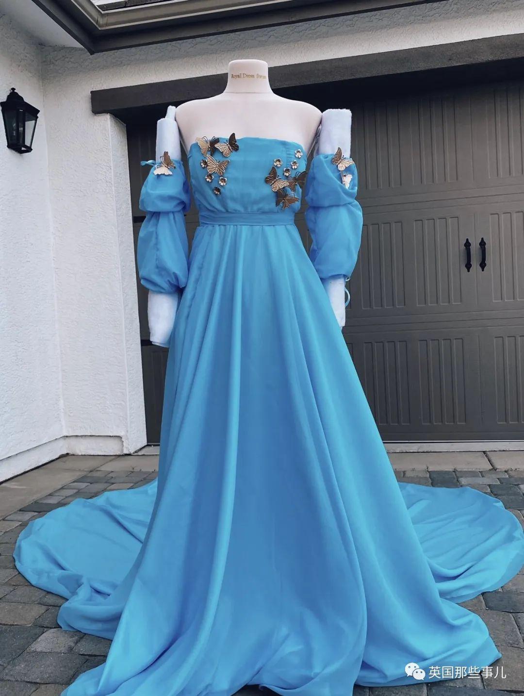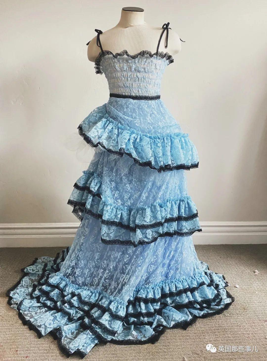 用浴帘做的蓝裙。