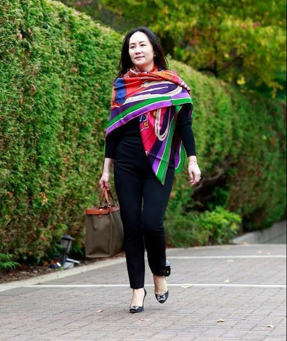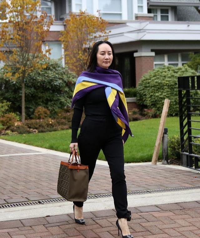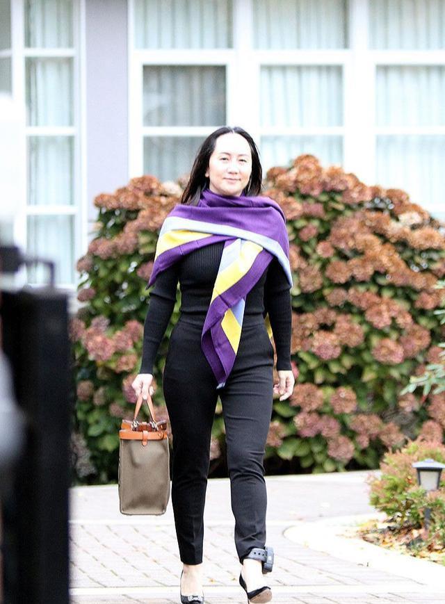 而孟晚舟聪明地搭配了一块披肩,鲜明的撞色设计为全黑造型带来了更为吸睛的视觉果,整体配色上也不会显得过于单一。