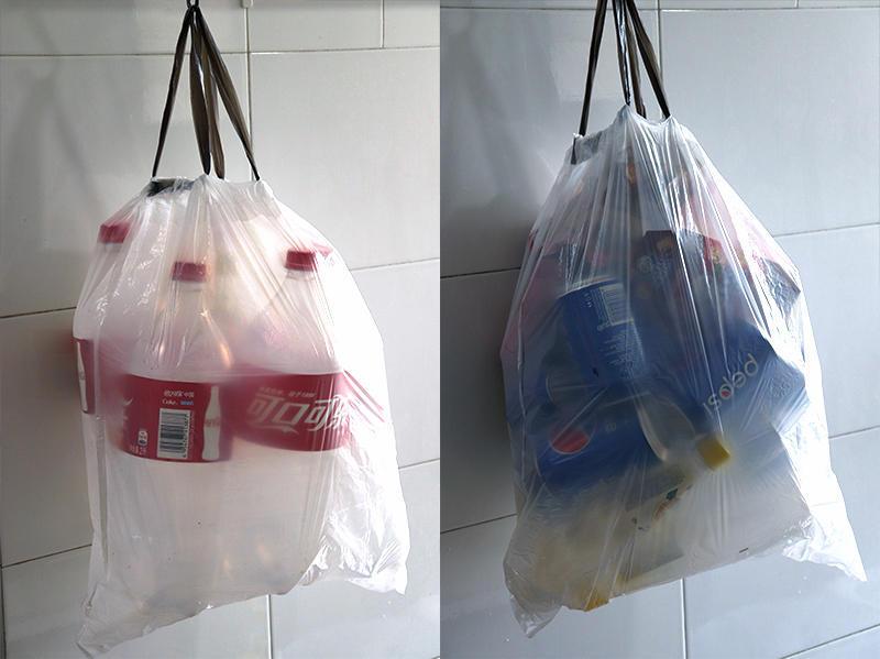 这次我入手的MIJOY抽绳式垃圾袋20只x3卷加外套自封袋包装,也是九块九毛九拿下60只(三卷)感觉真的好用,我还特意找了一堆瓶子来试试容量和承重。