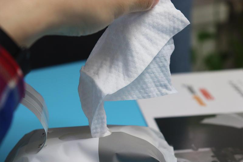 原料来自于天然木纤维提取的粘胶纤维,吸水性更好,擦手擦脸、擦拭衣服包包上的污渍都可以,本身还有一种淡淡的甜味,这是木糖醇的味道。使用时还感觉抽取时不会一次连带拽出2张,抽出一张后将封口贴合即可,不会粘污未使用的湿巾,不浪费的同时保持卫生。