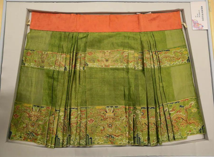 △明 葱绿地织金妆花纱蟒裙 孔子博物馆藏
