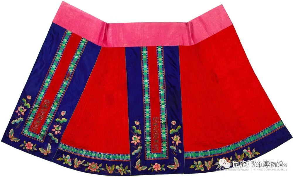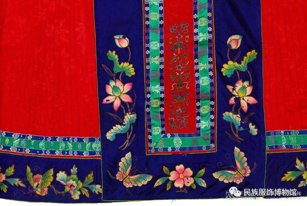 △清 红色暗花绸堆绫盘金绣边饰马面裙 民族服饰博物馆藏