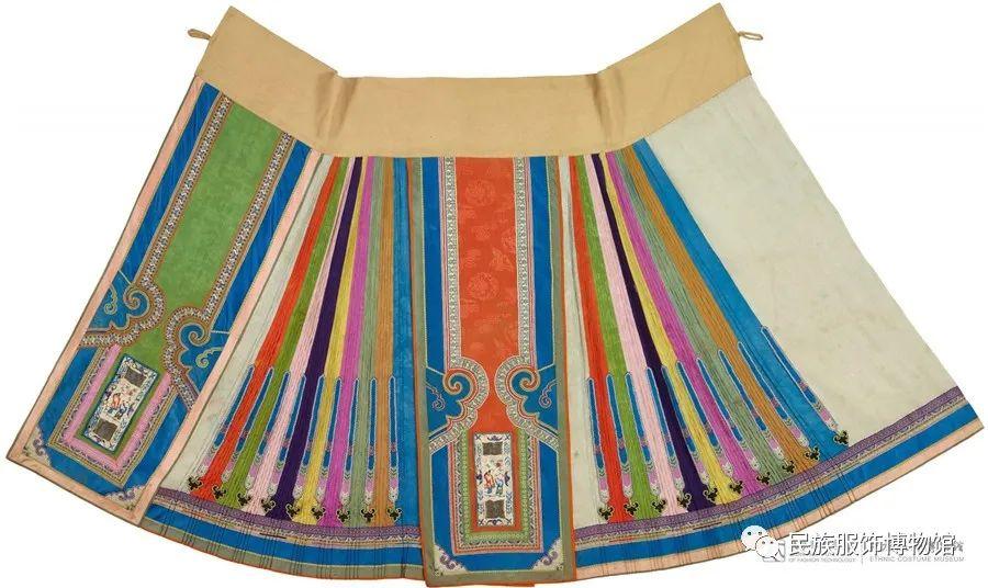 △五彩提花绸绣人物纹鱼鳞褶月华马面裙 民族服饰博物馆藏
