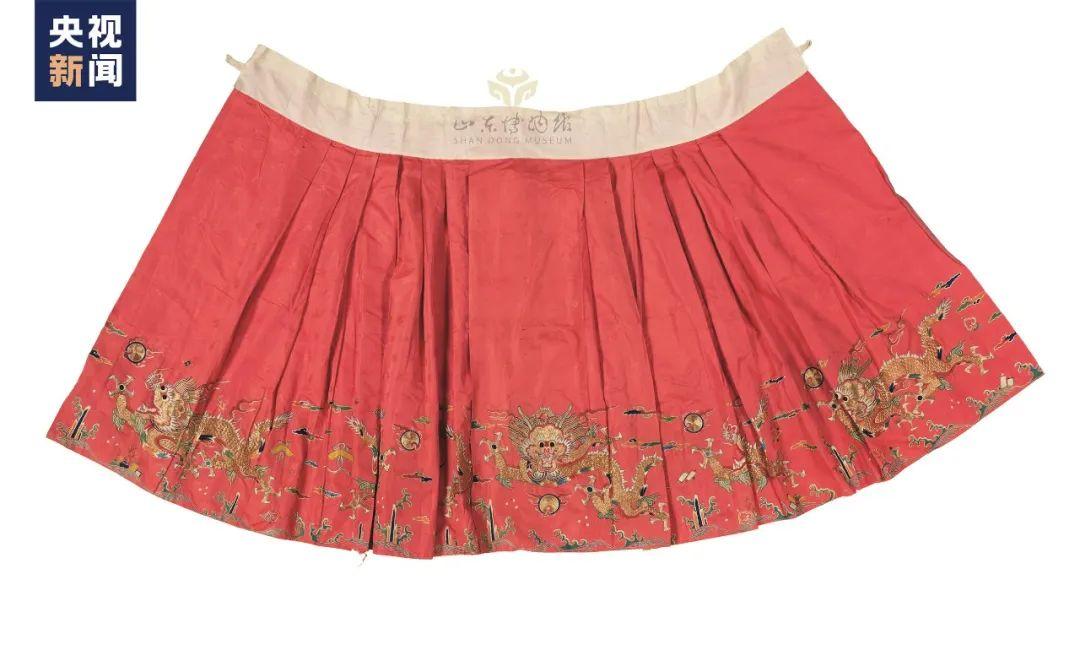 △明 红色暗花缎绣云蟒裙 山东博物馆藏