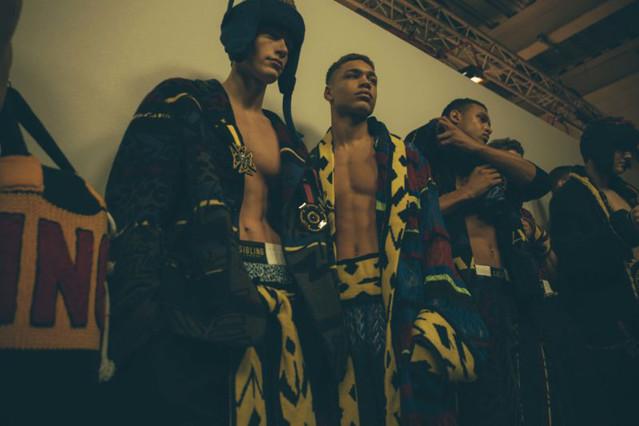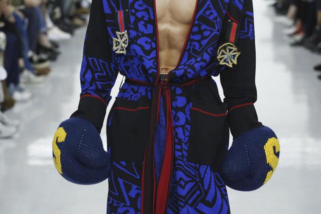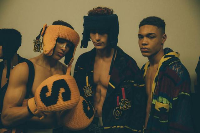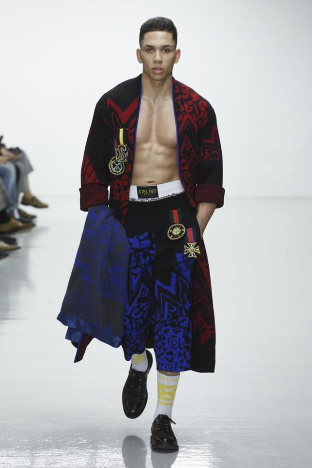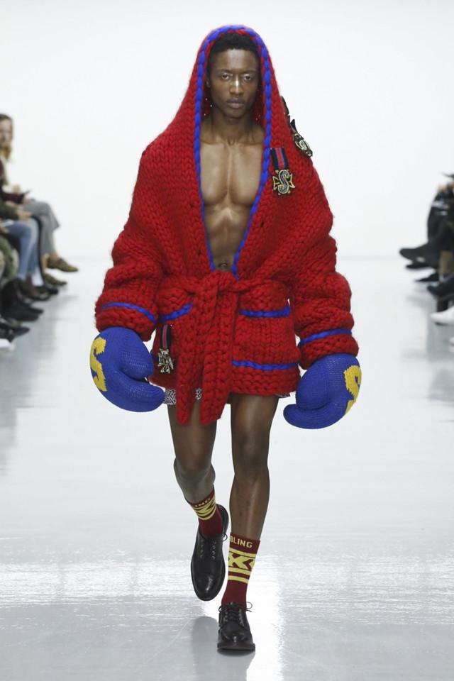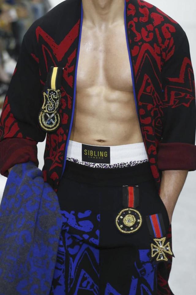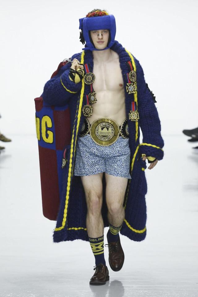 第二天的伦敦男装周是八仙过海、各显神通。Matthew Miller以西班牙内战与悲剧式结局的意大利画家Caravaggio的名画《David and goliath》为出发点,强调自己文化“新贵”的身份,誓要推翻老权贵,改朝换代的决心。在Sibling则是Grace Jones与Jean-Michel Basquiat在拳击赛场上针锋相对,产生有趣的碰撞。