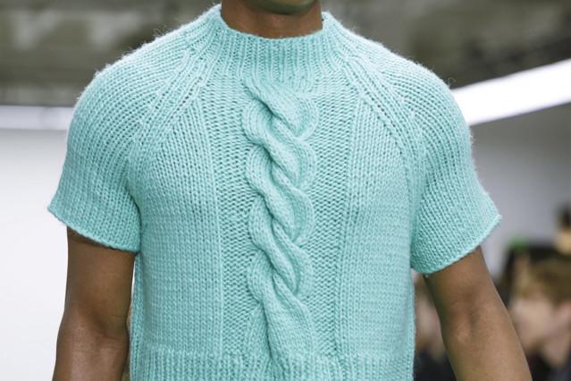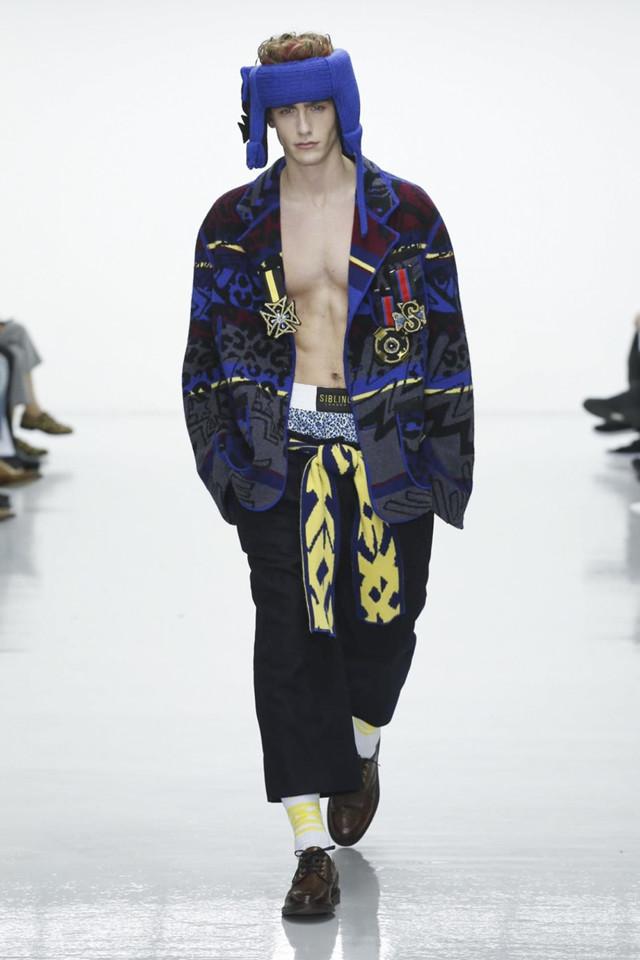 可以说,这一季的发布会造型工作是一如既往的成功。Matthew Josephs成功的让挂在货架上显得较为平淡的针织单品与传统外套变得有趣了起来。说不上有多时髦,也不见有多新颖,但是充满了趣味性。即便开场几个造型的裹法很难让人不去联想桑拿男子。(当然你也可以说这是拳击选手的穿着。)不过也正是由于一季又一季如此强烈的视觉冲击,一个以针织产品为主打的品牌才能够这么多年的持续出现在时装行业的前沿。相比起那些一味强调技艺即将失传的针织品牌,真正参与到了时代对话的Sibling有趣太多。