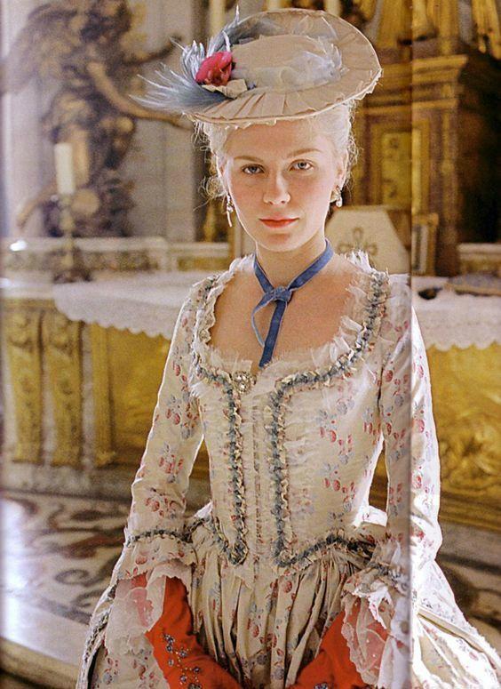 玛丽·安托尼瓦特在影片中更换了数套玲珑多彩的服装,再现了18世纪的法国女人的优雅气质。