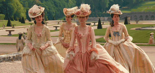 影片反映出洛可可服装的显著特点是柔媚细腻、 纤弱柔和,所以难免会使整个服装风格趋于柔美化、繁复化。