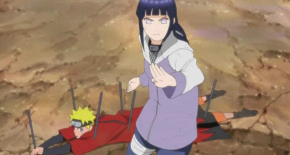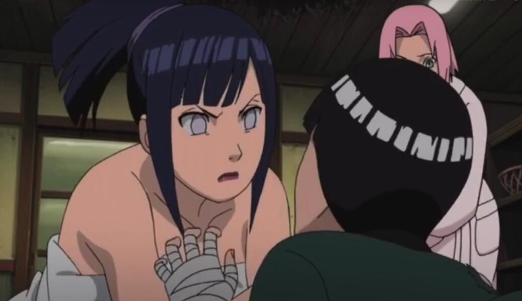 中忍时期的雏田留长了头发,个子长高身材也变得丰满,脚下换了凉鞋,上衣换了个颜色,和木叶的同伴长期相处后,能放声说话,对着鸣人也不太脸红了,当佩恩袭来,鸣人受困动弹不得,只会体术的她鼓起勇气和佩恩战斗。