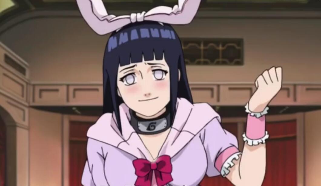 这一套是在彩蛋里出现的,没想到性格内敛的雏田居然会穿上女仆装,戴着兔耳朵,胸前还别着一朵玫红的蝴蝶结,大秀身材的同时还不忘害羞微笑,看到鸣人都脸红后,自信心增加不少。