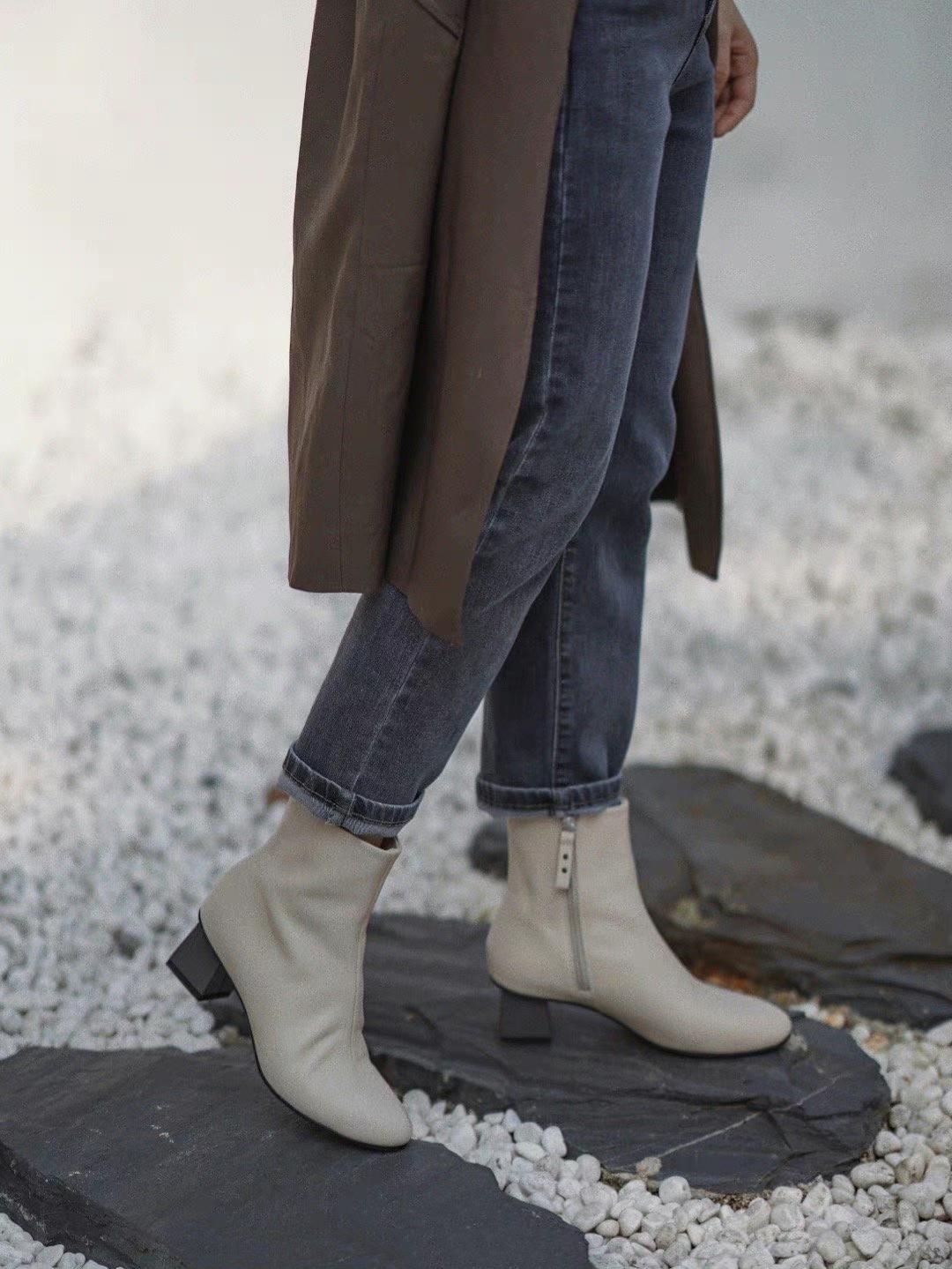 在挑选短靴也是需要注意,靴子讲究精致,尤其是在秋冬季繁重的穿搭中,一款精致的靴子可以起到锦上添花的作用,所以靴子的材质就要讲究一些,推荐选择麂皮、漆皮、亮皮。这些材质都是硬挺的,上脚可以更好的修饰腿部的线条,看起来干练高级。