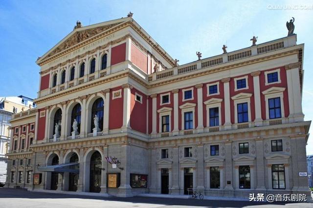 金色大厅由T·冯·汉森始建于1867年,1869年竣工,是意大利文艺复兴式建筑。外墙黄红两色相间,屋顶上竖立着许多音乐女神雕像,古雅别致。维也纳交响乐团每季度至少在此举办12场音乐会。