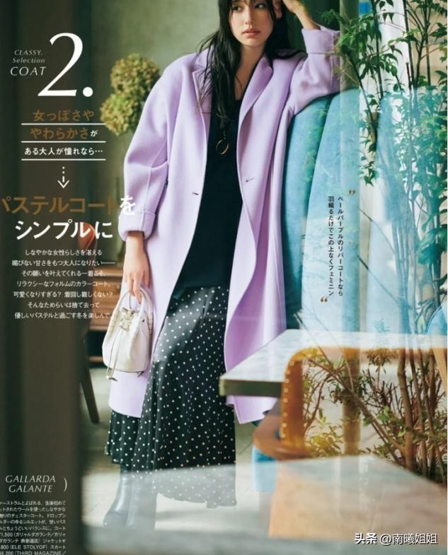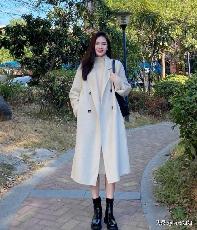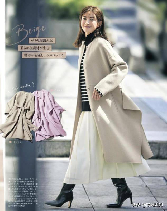 所以外套单品选择加长款式的大衣,用尼绒面料来凸显高贵感,皮质短靴增加双脚部分的量感,不同身材和年龄阶段的女人穿搭都很舒适。